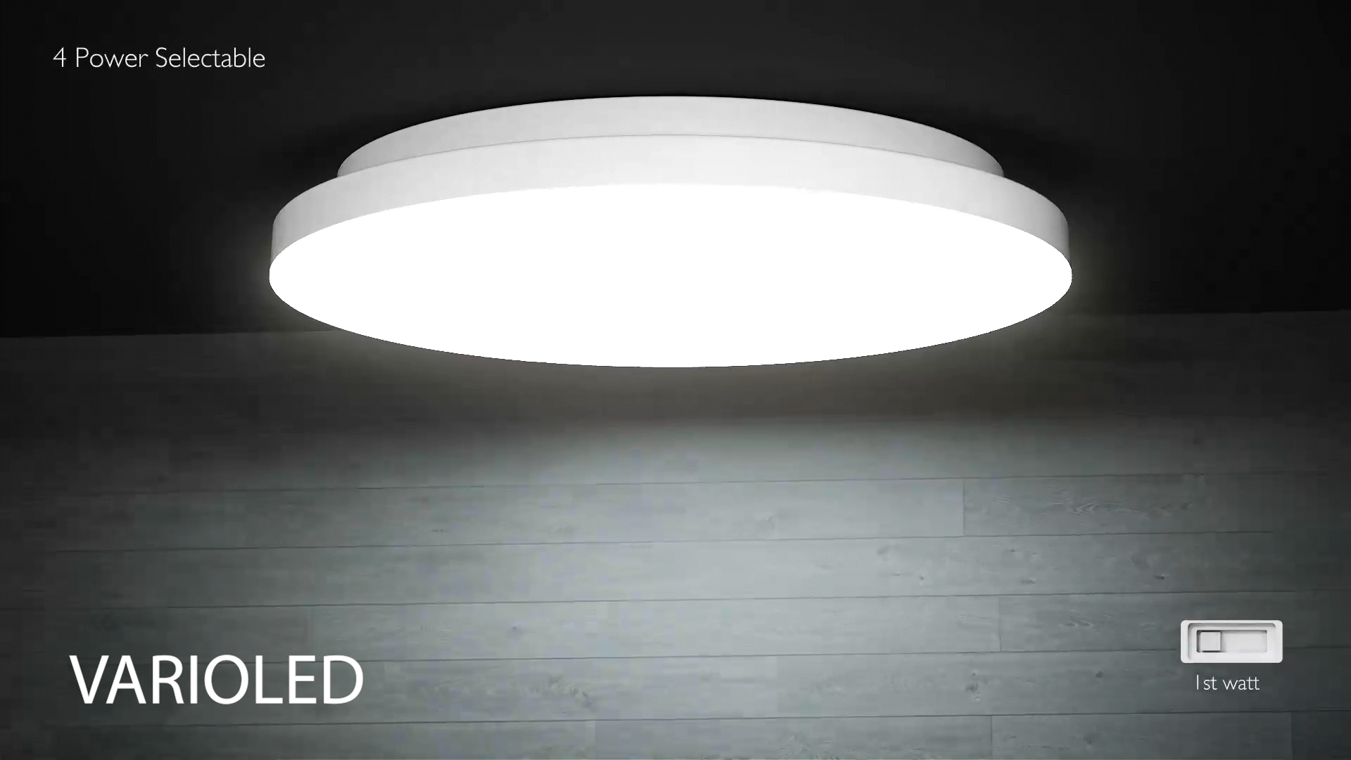 Mit der Wattagenswitch-Funktion auf der Leuchtenrückseite lässt sich die Helligkeit flexibel zwischen 14W, 16W, 18W und 20W einstellen. Dadurch variiert die Lichtleistung von 1120 lm bis 1900 lm in vier Stufen, wodurch die VARIOLED sowohl als Decken- als auch als Wandleuchte einsetzbar ist. Die Schutzart IP54 gewährleistet Spritzwasserschutz, was die Leuchte ideal für den Einsatz in Feuchträumen, Kellern und Garagen macht.
