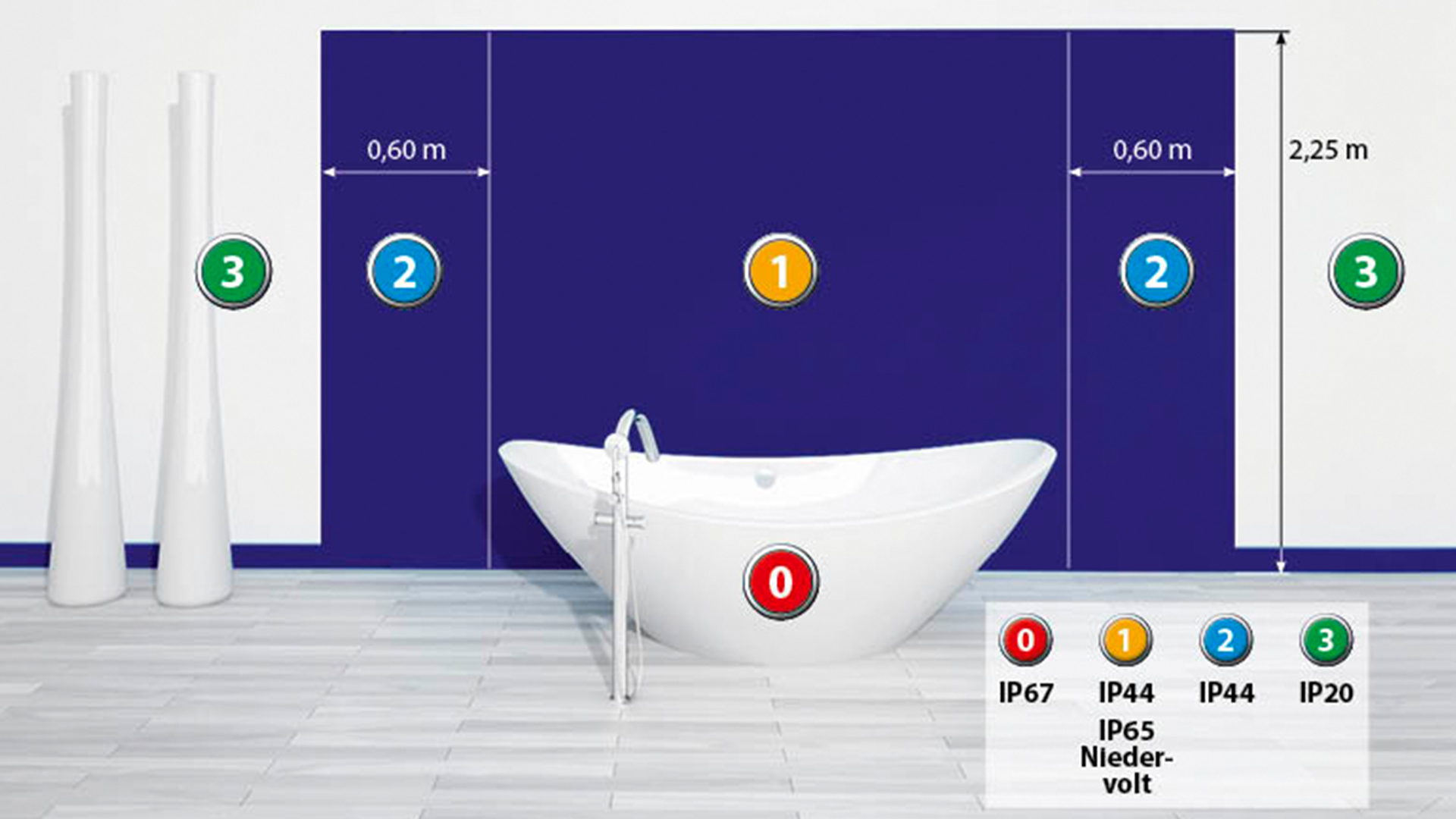 Wo welche IP-Schutzart zu installieren ist, ist in der aktuellen VDE Richtlinie festgelegt.