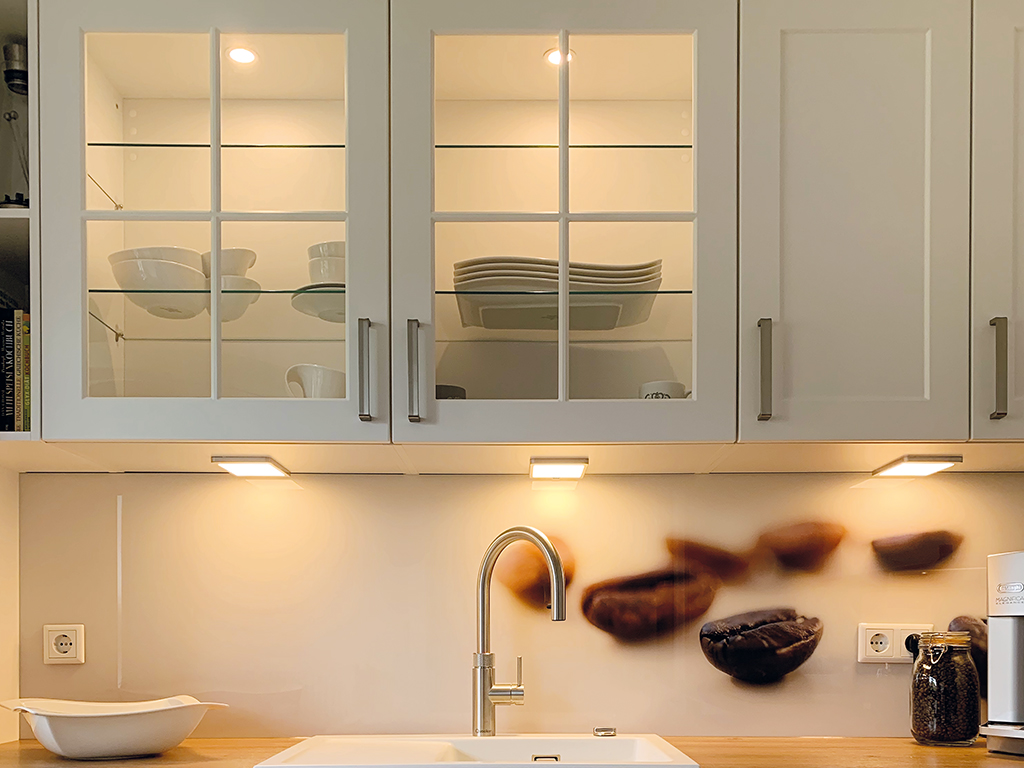 MOBiBLADE Möbelleuchten lassen sich mühelos in jeder Küche nachrüsten. Ihr kompakter Möbeltreiber findet problemlos hinter jedem Möbelstück Platz. Zudem sind die Leuchten steckerfertig, was die Installation besonders einfach macht. Die hochwertige Beleuchtung kombiniert Funktionalität mit modernem Design und schafft somit nicht nur optimale Lichtverhältnisse, sondern auch eine ästhetische Atmosphäre in Ihrer Küche. Die Leuchte reagiert nicht empfindlich auf Wasserdampf und kann beispielsweise mit einem Kooker Warmwasserhahn kombiniert werden. Investieren Sie in die Zukunft der Küchenbeleuchtung mit MOBiBLADE Aufbauleuchten und erleben Sie Komfort und Stil in einem. Kombinieren Sie dazu MOB Möbelleuchten: ideal für die Schrankbeleuchtung mit inkludiertem Aufbauring für eine einfache Montage.